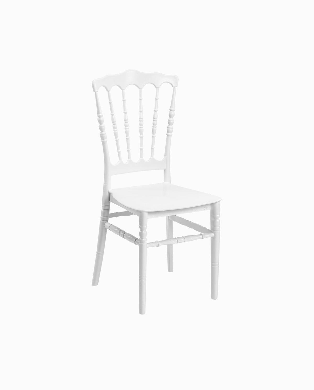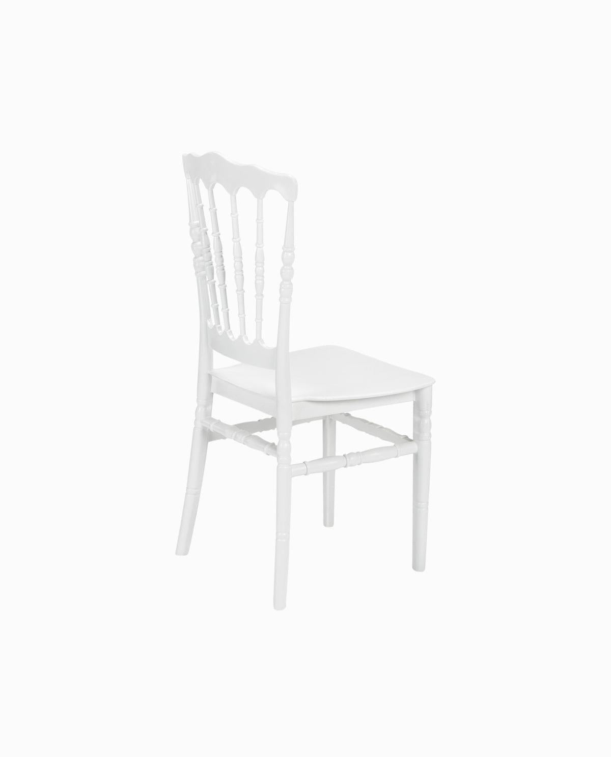 Kunststof napoleon stoel, de zitting is comfortabel met een kussentje. Voeg de stoelkussen zwart, wit of luipaard toe aan deze stoel.