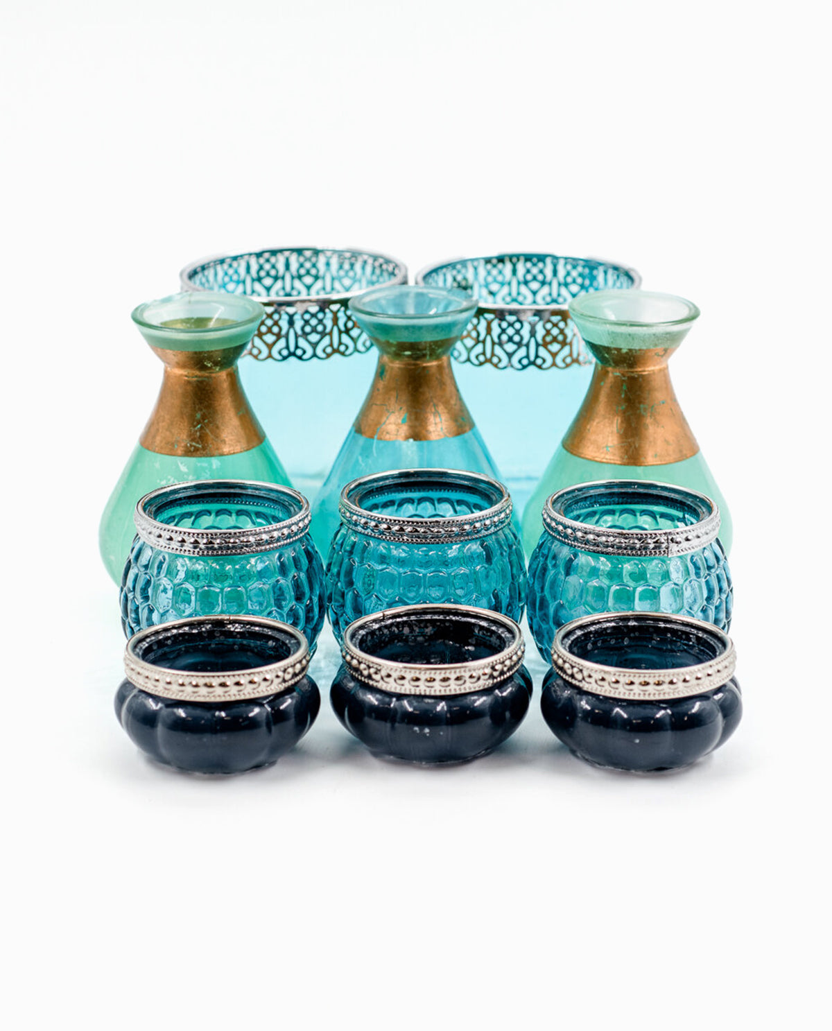 BLUE VASES AND TEA LIGHTS ARABIC STYLE (SET OF 11)