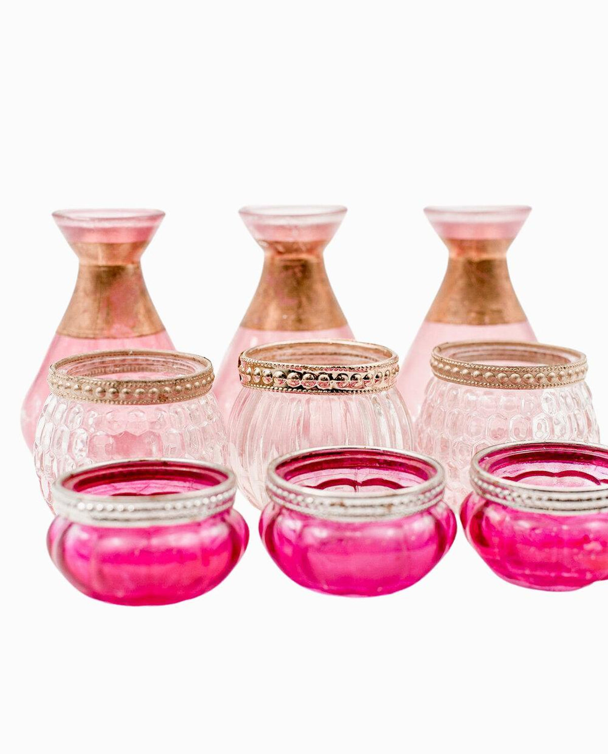PINK VASES AND TEA LIGHTS ARABIC STYLE (SET OF 10)
