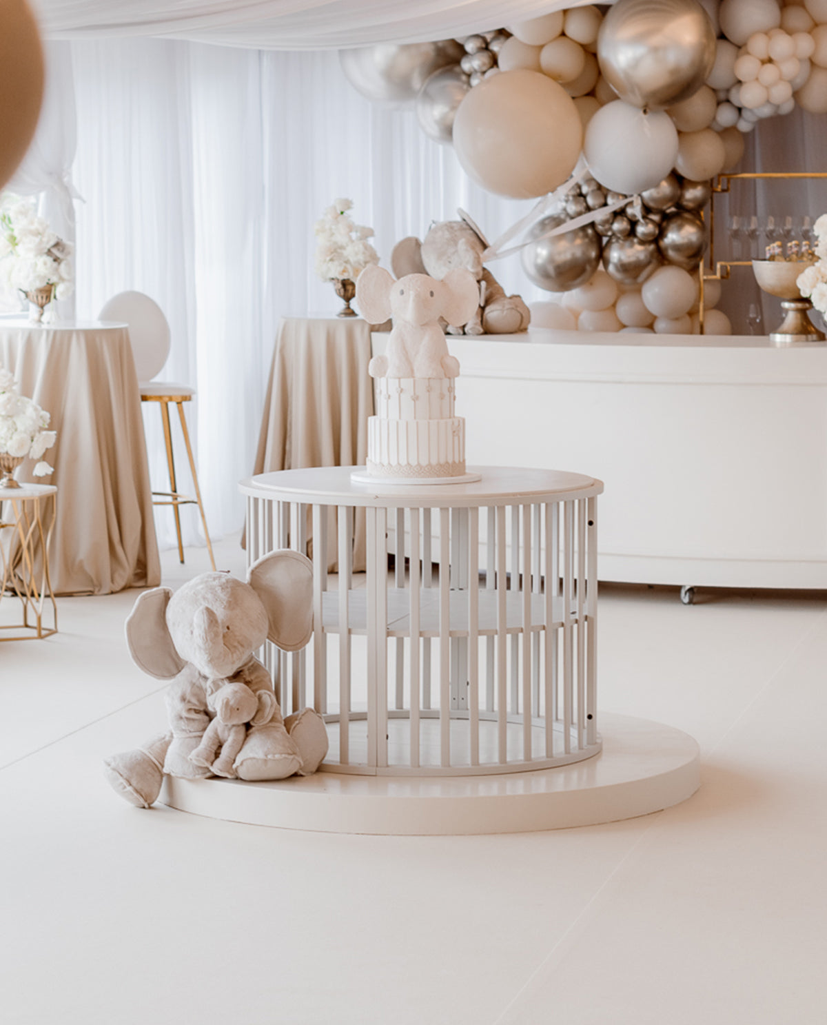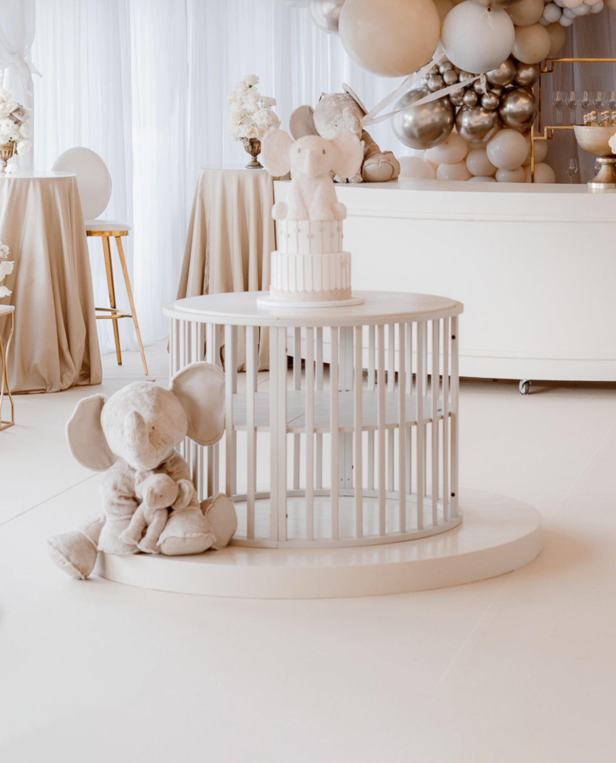 Unieke XL cake display meubel in de kleur pebble grey.