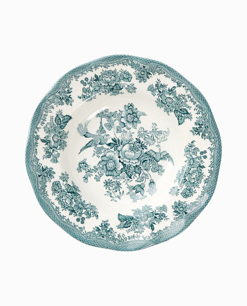 Dit is een vintage groen bord met een bloemenmotief. Combineer met het andere servies van deze collectie.